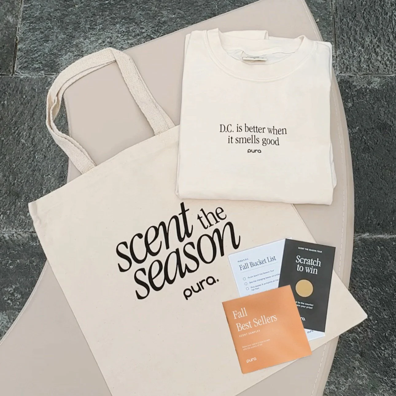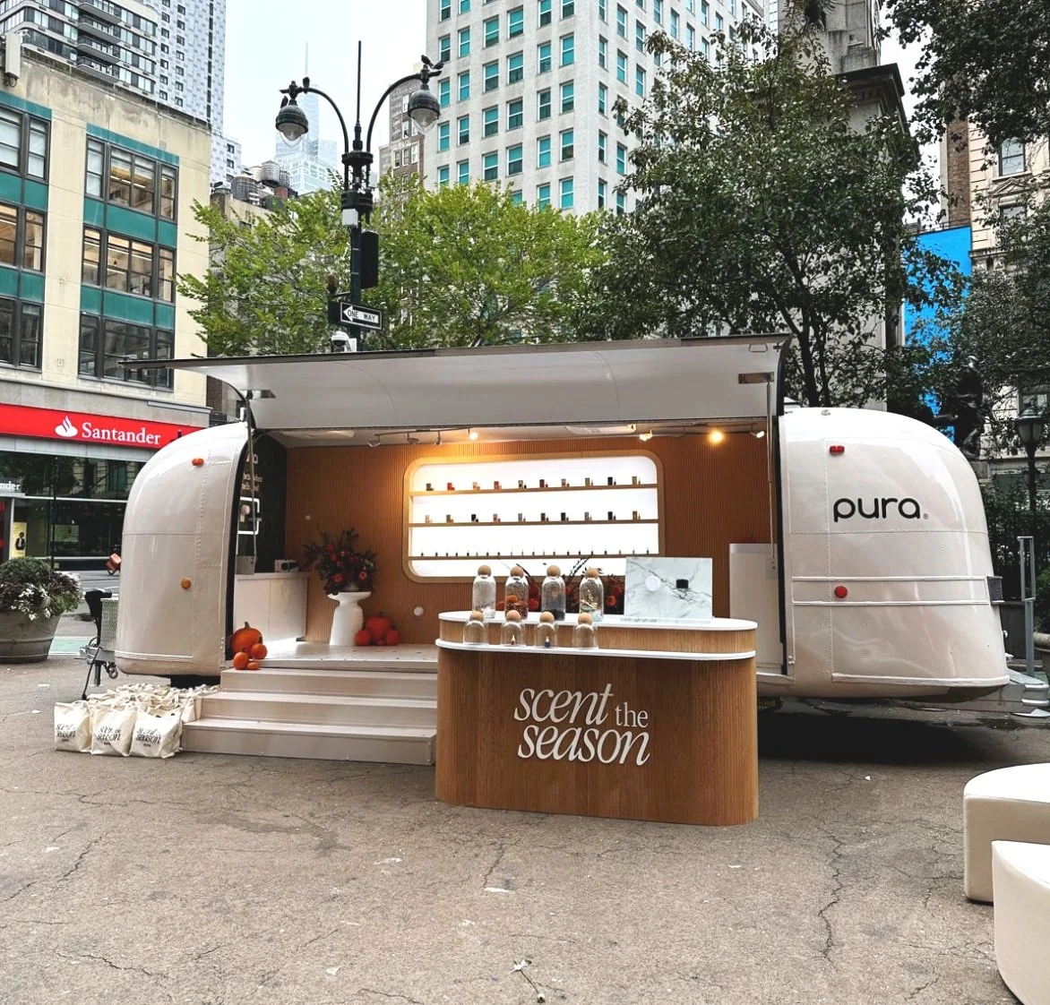 Led the conceptualization of the logo, designed the captivating wrap, merchandise, and more for our mobile pop-up airstream during the 'Scent the Season' campaign. The airstream wrap elegantly pays homage to the essence of scent, envisioning the graceful flow of fragrance through the air while maintaining Pura's branding in neutral tones.