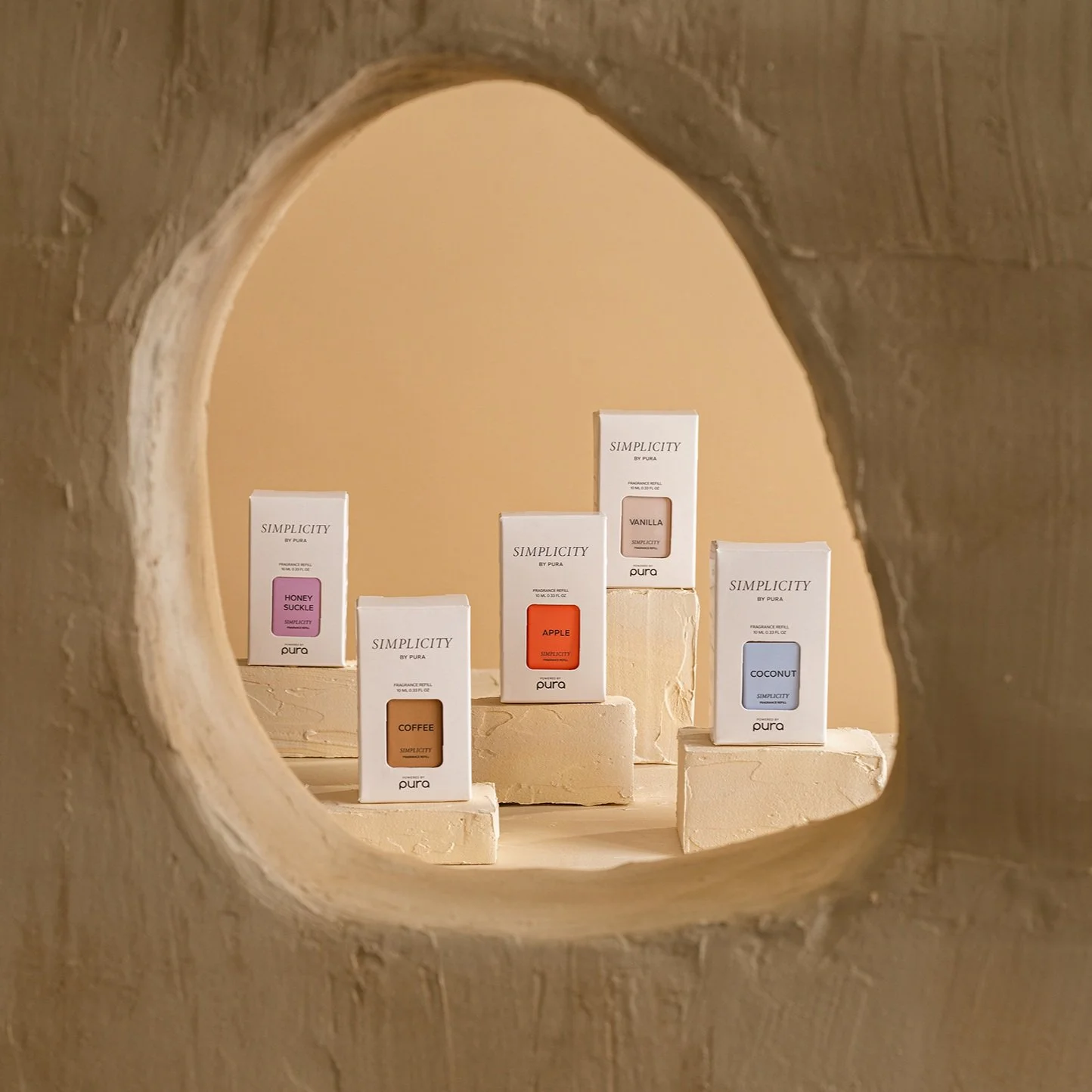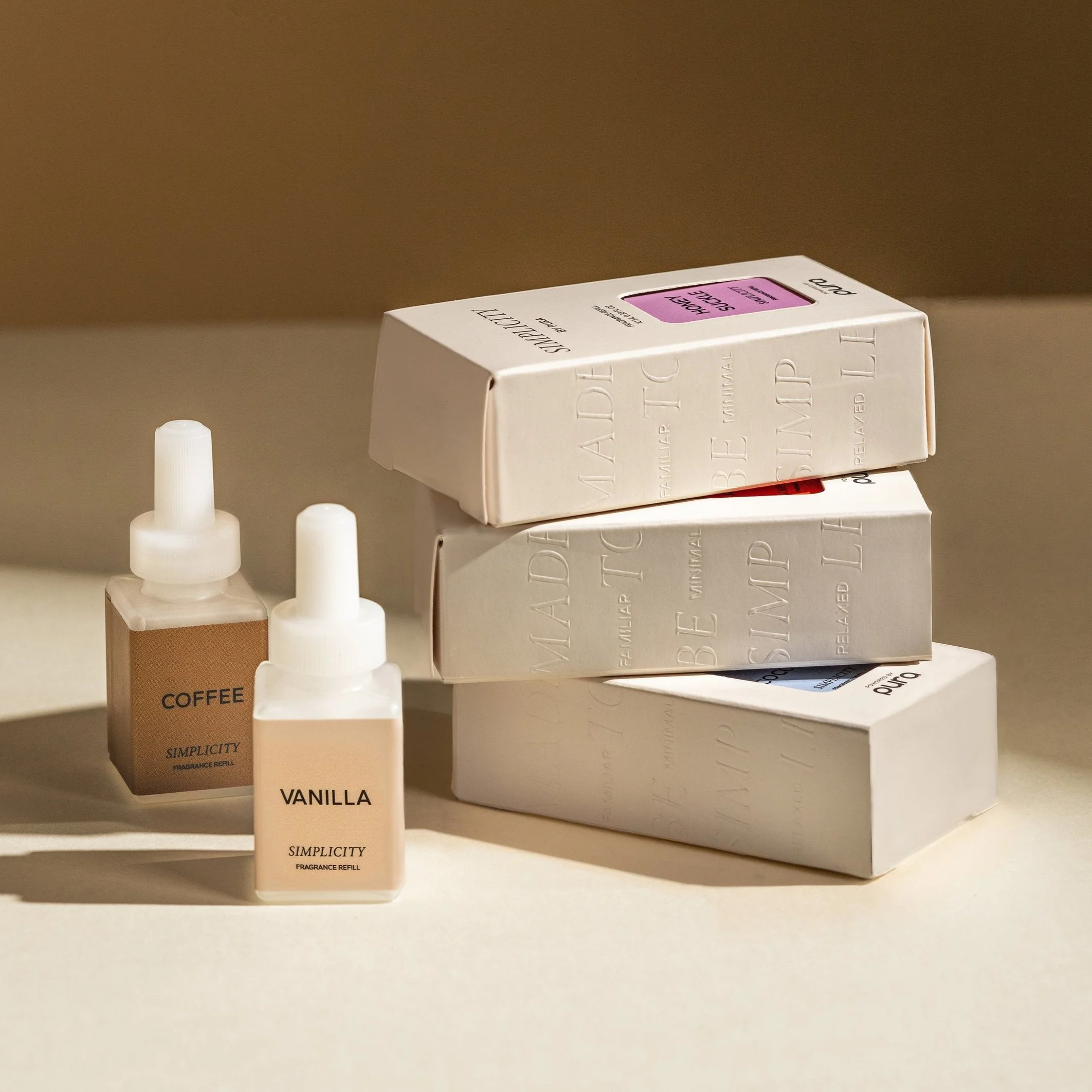 Simplicity captures a straightforward scent in an effortless, familiar way. With one single note as the focus for each fragrance, these scents deliver the true power of fragrance in a minimalistic manner. The packaging reflects this concept, with each vial's color representing the single note upon which the scent is based. The box is designed to emphasize the scent note color, fulfilling customer requests for a straightforward representation of the scents they are purchasing in our fragrance line.